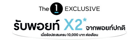 - The 1 Exclusive รับพอยท์ 2 เท่าจากพอยท์ปกติ เมื่อช้อปสะสมครบ 10,000 บาท ต่อเดือน